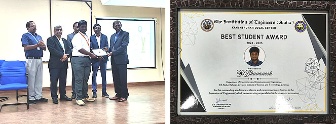 - Mr. S.Bhuvanesh- IV year ECE won Outstanding academic excellence and exceptional contribution to Institution of engineers