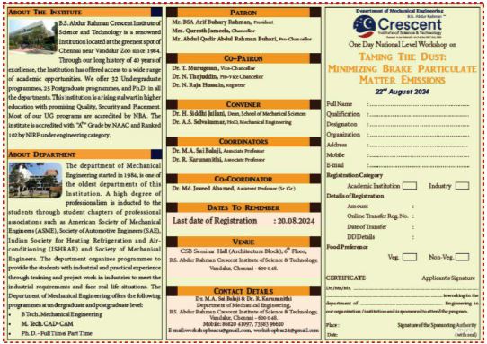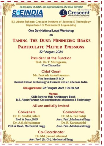 B.S. Abdur Rahman Crescent Institute of Science and Technology (BSACIST) has a strong commitment to environmental sustainability through a range of structured training programmes that build awareness and knowledge among both staff and students.