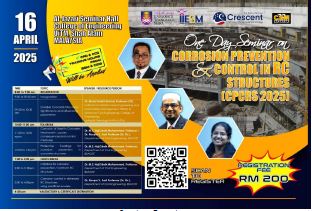 b)    A report on the seminar on “Corrosion Prevention and Control in RC Structures (CPCRS 25)” at UiTM, Malaysia