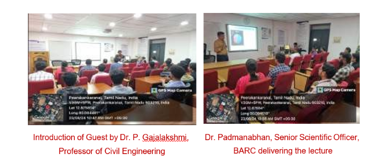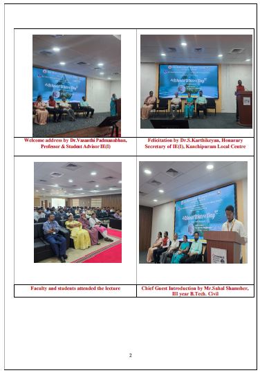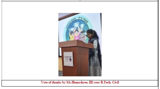 A Guest Lecture on “Importance of solid waste management in India” was organized by ASCE Student Chapter, Department of Civil Engineering on 02.09.2024, 03.00 pm at Seminar Hall for the benefit of III Year B.Tech Civil Engineering students.