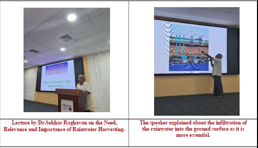 The speaker also emphasized the importance of “Recycle , Reuse and Recover” and the initiatives taken by the government of Tamilnadu such as “Manjapai thittam “ etc was disseminated among the students. The session was very much informative and interactive. The students clarified their doubts through a very active interaction with the speaker.