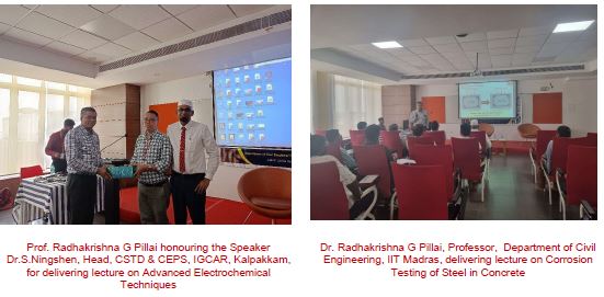 Dr. G. Padmanabhan, the guest speaker, covered the key topics including the importance of deflection and cracking in structures, the use of special concretes and the seismic analysis of nuclear safety-related structures. He explained that nuclear power plants and related facilities must be designed to withstand natural disasters, such as earthquakes, to ensure the safety of the plant and the surrounding environment.