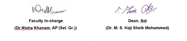 Vote of thanks was proposed by the Faculty Dr. Priya VS, Associate Professor. She thanked the Dean (Sol) for giving an opportunity for the students to interact with the experts from the industry and also thanked the guest speaker for his informative lecture .