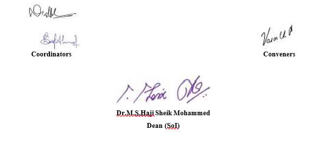 Department of Chemistry organized a Guest Lecture on the topic of ‘The story of Climate change, Hydrogen and Mars landing” by the resource person Dr. Iyappan Arunkumar, Founder & Chairman of AnA startups Korea & India on 19th November 2024, Tuesday from 10.00 am to 11.30 am in CIIC Seminar Hall. The conveners of the Programme is Dr. I. Raja Mohamed, Professor and Dean (SPCS) and Dr. N. Hajarabeevi, Professor and Head, Department of Chemistry. The Coordinator of the programme was Dr. Jasmine Annajothi Jacob, Assistant Professor, Department of Chemistry. In this Guest lecture, M.Sc. Chemistry students and Faculty of Chemistry Department were participated. This programme was started with Qirath by Mr. Mohammad Hisham, first year M.Sc. student. Welcome address was given by Dr. N. Hajarabeevi, Professor & Head, Department of Chemistry. The introduction of Guest was given by Dr. Jasmine Annajothi Jacob, Assistant Professor, Department of Chemistry. Dr. Iyappan Arunkumar gave the lecture on the given topic and also career guidance to the students. After this the programme was concluded with vote of thanks by the coordinator Dr. Jasmine Annajothi Jacob.