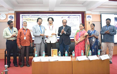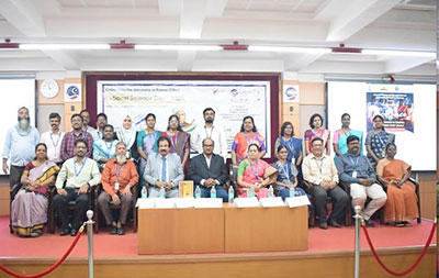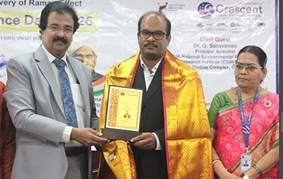 The Chief Guest of the National Science Day, Professor V. Subramanian, Department of Physics, from Indian Institute of Technology, Madras, has delivered a lecture on the topic of “Nanomaterials for Electromagnetic application”. Prof. Dr.V.Subramanian, started his lecture with an introduction to what Raman Effect and how it is used. He also explained about the photonic crystals, wave vector diagram, Maxwell’s wave equation as a linear Hermitian Eigen value problem, Microwave microscopy and electromagnetic interference (EMI) shielding and how Nuisance level to life threatening and about electromagnetic (EM) threat perception that high power electromagnetic fields or magnetic fields through induction or spikes in power lines that cause damages to the lighting systems and TV sets during lightning.