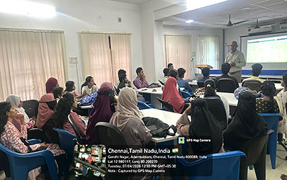 - An interaction session with Research Scholars was arranged on 19th January 2015. Prof. Ibrahim Sha, USA, addressed the gathering and interacted with the Research Scholars of B. S. Abdur Rahman Institute.
