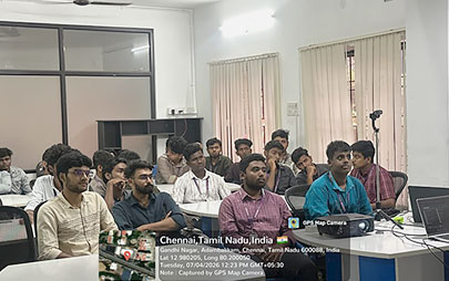 - On 14th March 2014, Mr. Gajendran Ganesapandian, a Member of Technical Staff Engineer, Pay Pal, India, addressed the students and presented a talk on Android Programming and encouraged students to develop mobile applications.