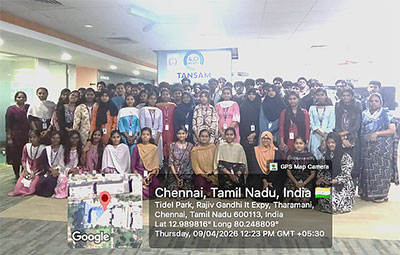 An industrial visit was organized to the Tamil Nadu Smart and Advanced Manufacturing Centre (TANSAM), located at TIDEL Park, Chennai, for II Semester students of B.Sc. Computer Science and BCA (CTIS, CS & DS) on 09/04/2026. The visit aimed to provide students with practical exposure to modern manufacturing technologies and Industry 4.0 concepts.