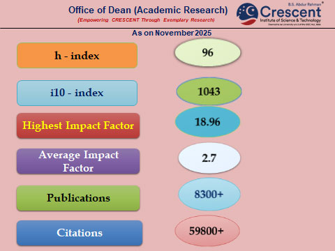 - B. S. Abdur Rahman Crescent Institute of Science and Technology a “Research Intensive Institution”. The institute lays greater emphasis on Academic and Sponsored Research in its endeavour to become a Premier Institute contributing to the Scientific and Technological Development of our Country.