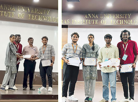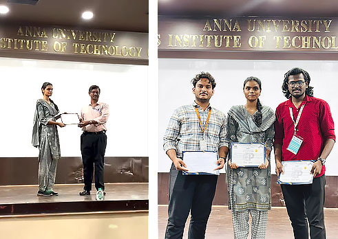 - Ramya Shree. V, Aneesh P.K, Manoj P.V, and Logeswari S.P, (2021-2025 Batch) of 3rd year B.Tech. Polymer Engineering have won 1st place in the Poster Presentation category titled, “An Eco-Benign Novel Light Weight Hybrid Biocomposites for Automotive Applications”, organized by the Department of Chemical Engineering, SRM University, Chennai, Chemflux’24, a National Level Technical Symposium held during on 21-23 February 2024.
