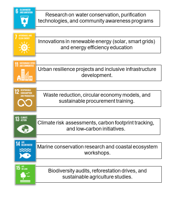B. S. Abdur Rahman Crescent Institute of Science and Technology (BSACIST) shows a strong dedication to research that supports the United Nations Sustainable Development Goals (SDGs). Through its CGOM R&D Center, the institute embeds sustainability into its teaching, day-to-day operations, and research activities—helping to advance both national and global sustainability priorities. This report reviews BSACIST’s research contributions to priority SDGs, with a focus on its interdisciplinary strategy, institutional sustainability policies, and tangible outcomes.